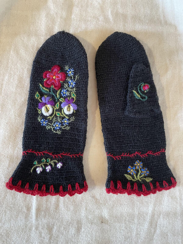 “Pari of black nålbundna mittens in wool with embroided flowers,” VERAP, accessed April 2, 2026, https://culturality.museum/omeka/items/show/1347.